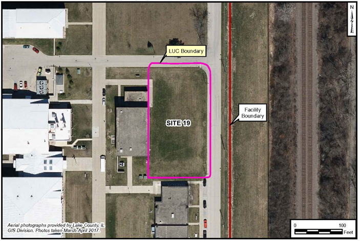 In 1998, prior to the demolition of Building 910, two soil samples were collected adjacent to the building. The building was demolished in August 2000, and the site was covered with 12 inches of topsoil and hydroseeded. Soil samples were also collected in 2001 on Lake County Property located east of Building 910, two of which were collected near Site 19. One sample was collected slightly north and east of Site 19, and another was collected southeast of Site 19.