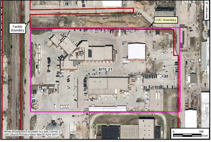 A Focused FS Report was prepared in October 2013. A PP was completed in February 2014. The Site 21 ROD was signed in 2014, and describes a remedy including LUCs to restrict use of the site and make sure contaminated soils are covered by a barrier to prevent exposure. LUCs were implemented in May 2016. Also, the installation of groundwater wells (other than environmental evaluation or monitoring wells) is prohibited by Naval Station Great Lakes Instruction 11130.1 (Groundwater Use Restrictions).