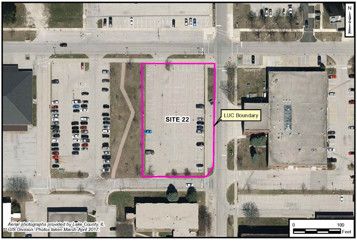 An interim remedial action for Site 22 consisted of a focused electrical resistance heating (ERH) study, implemented in 2006, which was successful in reducing soil contaminant concentrations. However, contaminants remain in place at concentrations exceeding criteria that allow for unrestricted use. The Site 22 ROD was signed in 2008. An engineered barrier (an impermeable liner and asphalt pavement) was installed in 2009 that prevents direct contact with residual contaminants. LUCs were implemented in 2009 to restrict future use of the site to industrial/commercial scenarios, prohibit installation of groundwater wells other than for environmental sampling (prohibited by Naval Station Great Lakes Instruction 11130.1 Groundwater Use Restrictions), and require annual inspections of the site to make sure LUCs are continuing to be implemented. The remedy in place continues to be protective of human health and the environment. In addition, construction activities and intrusive work of any kind at the site must be forwarded to the Naval Facilities Engineering Command (NAVFAC) Environmental Business Line Core for review, certification, and approval in accordance with the LUC Implementation Plan and Base Master Plan. The approval process is to ensure worker safety as required under state and federal regulations.