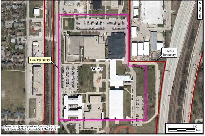 The Site 9 ROD was signed in 2014. The selected remedy for Site 9 includes LUCs to make sure the property is not developed for residential or non-residential special uses (such as parks, day care, or schools). Potential construction plans would have to be reviewed to protect workers and confirm proper management of contaminated media prior to construction activities. LUCs also prevent groundwater use (prohibited by Naval Station Great Lakes Instruction 11130.1 Groundwater Use Restrictions) and stipulate that existing pavement , buildings, and maintained grassy areas are used as barriers to prevent exposure to contamination. The barriers are required to remain intact. LUCs were implemented in May 2016.