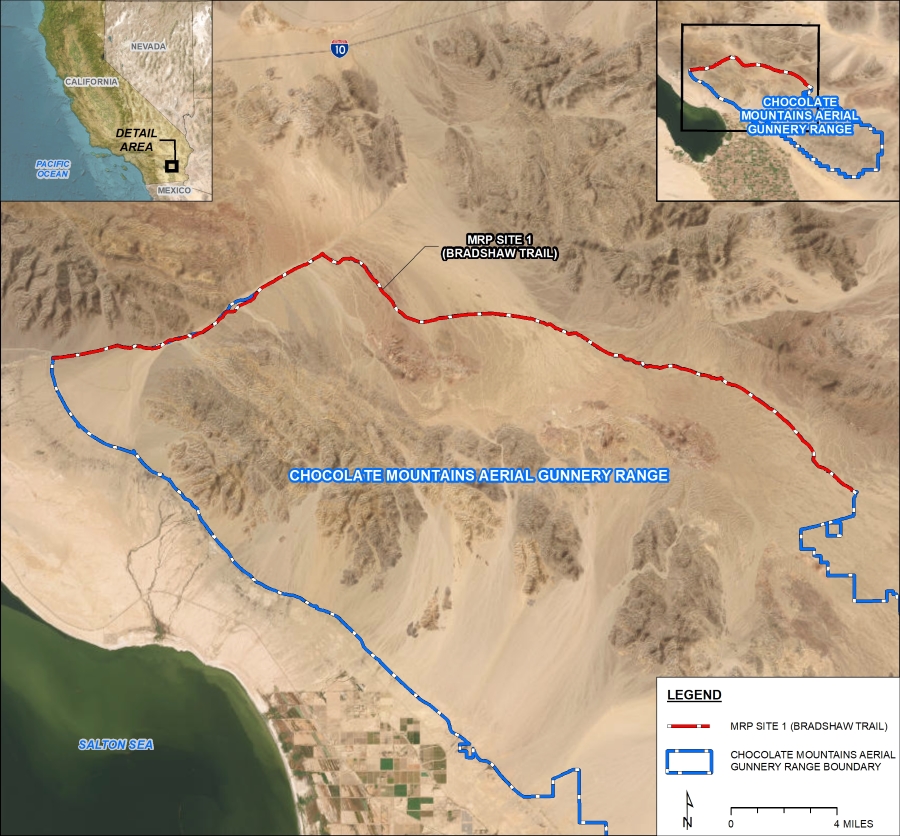 The current Installation Restoration Program (IRP) sites at the Chocolate Mountain Aerial Gunnery Range (CMAGR) are managed under the Department of the Navy’s (Navy) Environmental Restoration Program (ERP). The overarching goal of the Navy’s ERP is to protect human health and the environment from past hazardous waste practices and releases at Navy IRP sites. The interactive map below shows which sites are being addressed under the Navy’s ERP. At CMAGR, the Naval Facilities Engineering Systems Command Southwest in San Diego, California, manages the ERP.