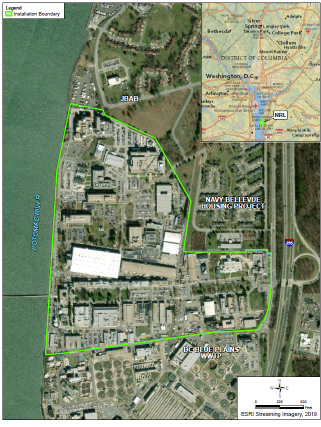 The Naval Research Laboratory (NRL) located in Washington D.C. was officially established on July 2, 1923, as the Naval Experimental and Research Laboratory. NRL occupies approximately 129 acres and is bounded by the Potomac River to the west, Joint Base Anacostia-Bolling to the north, the Navy Bellevue Housing Project and Interstate 295 to the east, and Blue Plains Wastewater Treatment Plant to the south.