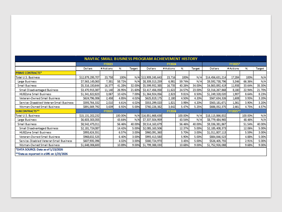 Visit our "Opportunities" pages for lists of NAVFAC prime contractors to contact for your subcontracting opportunities!