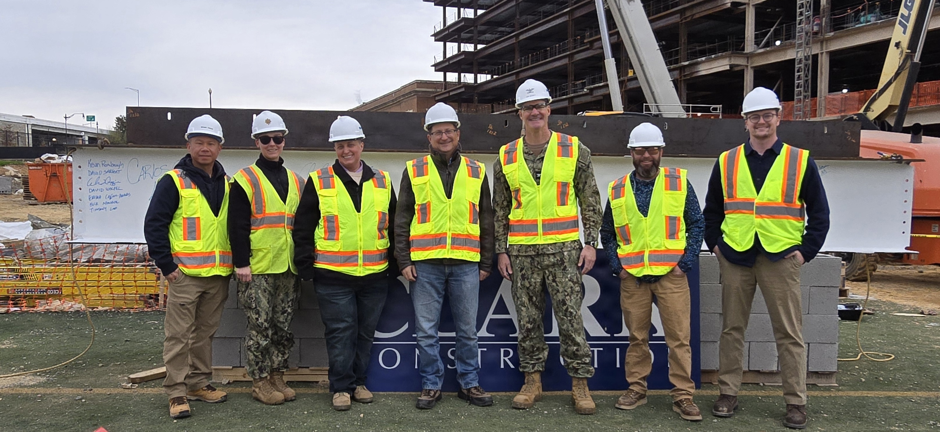 Naval Facilities Engineering Systems Command (NAVFAC) Washington celebrated a significant milestone in the construction of the new Marine Bachelor Enlisted Quarters and Support Facility at Marine Barracks Washington annex in Washington D.C. with a topping out ceremony held March 25.